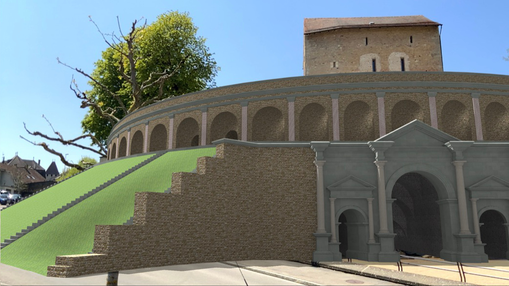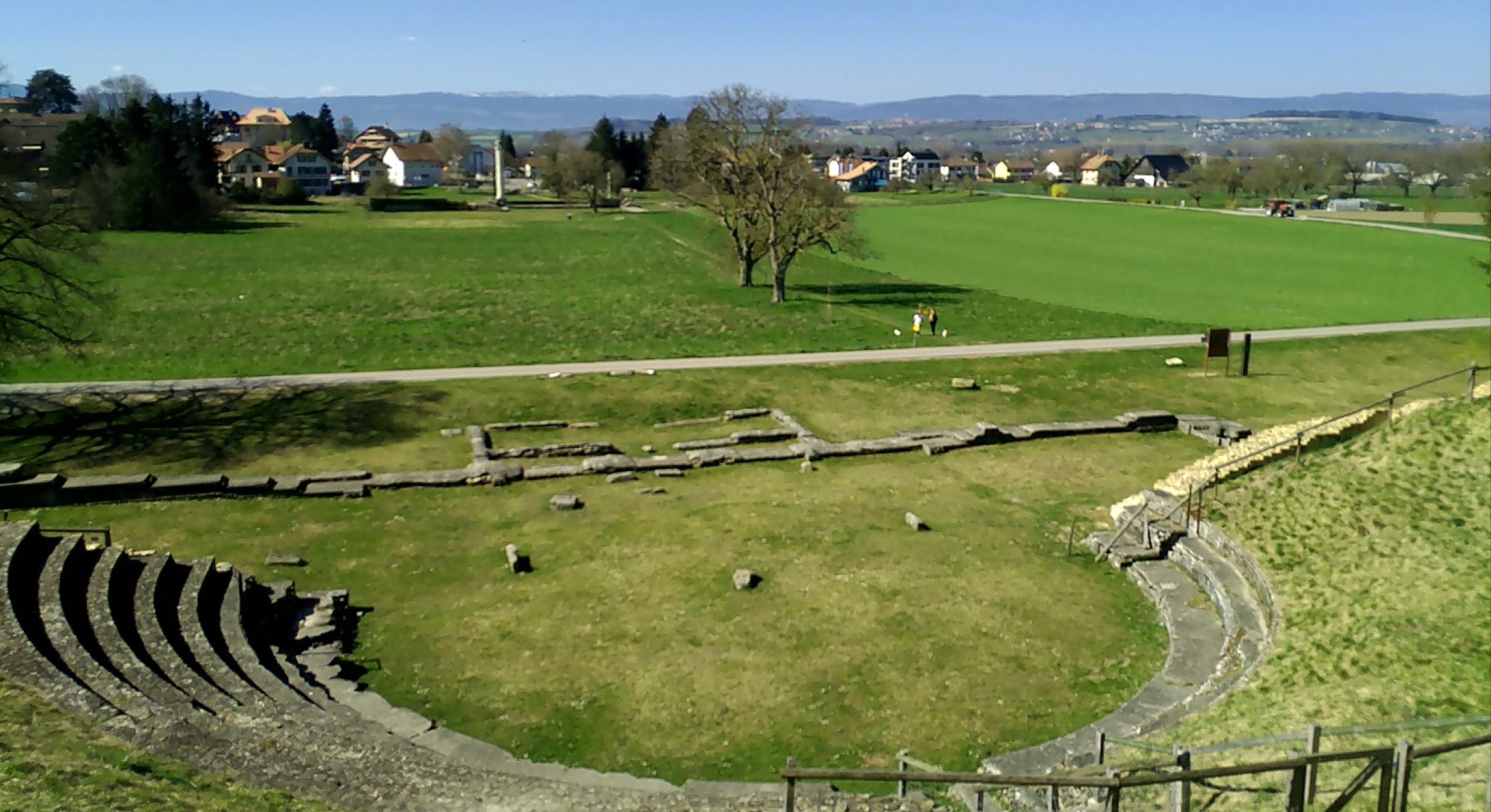 In der vom Keltenstamm der Helvetier gegründeten Stadt sind noch heute römische Bauten teilweise sichtbar - das Theater, das Amphitheater und das Cigognier-Heiligtum, welche nun dank der Erleb-AR App wieder in ihrer antiken Pracht bewundert werden können.