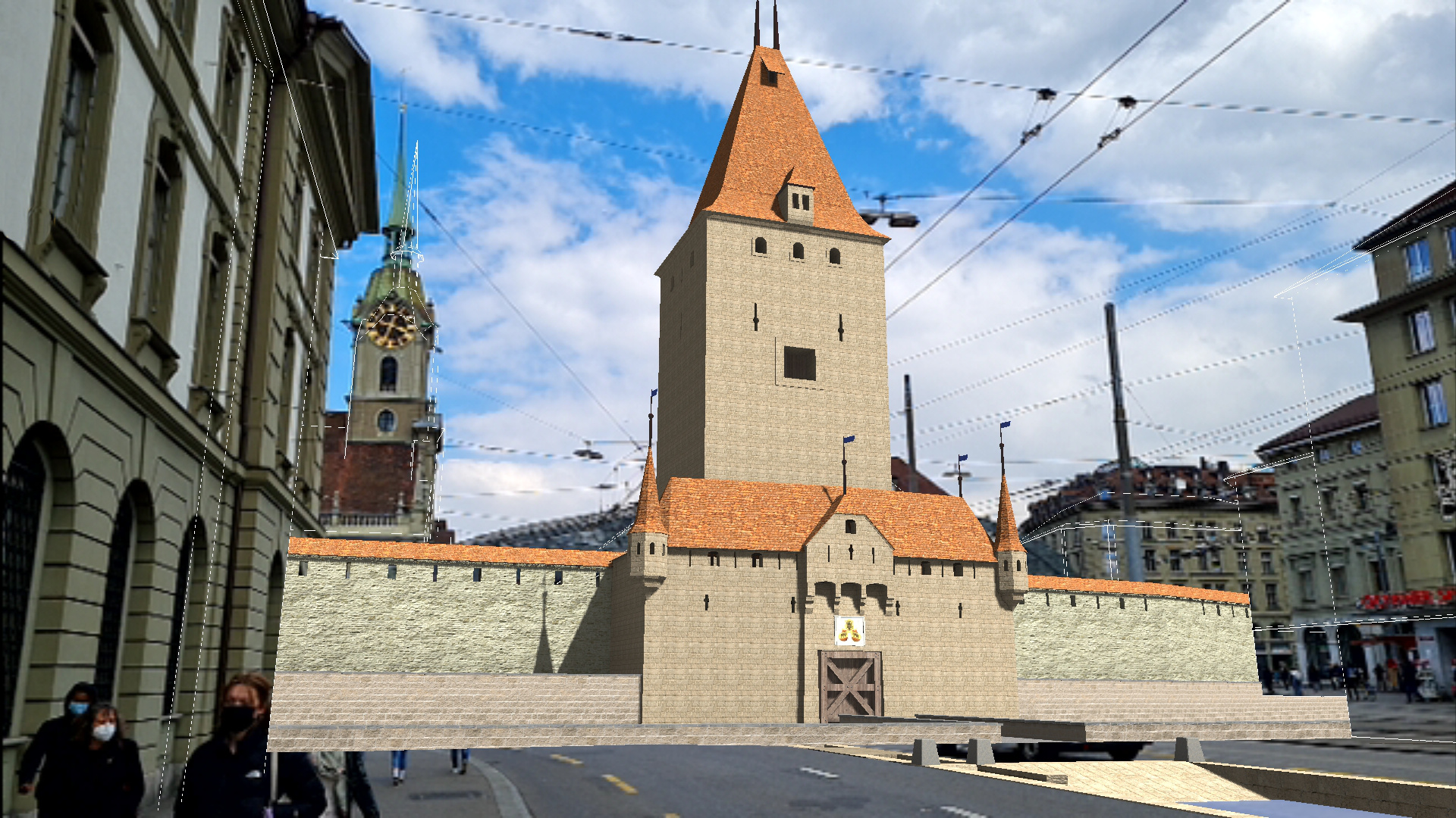 Bern hatte einst eine Befestigung um die ganze Stadt. Der Christoffelturm stand bis zu seinem Abbruch mitte des 19. Jahrhunderts dort, wo heute der Baldachin den berner Banhofsplatz überspannt. Mit der Erleb-AR App kann der Turm jetzt wieder an seinem ursprünglichen Platz betrachtet werden.